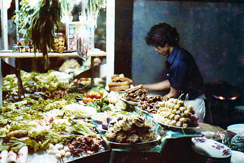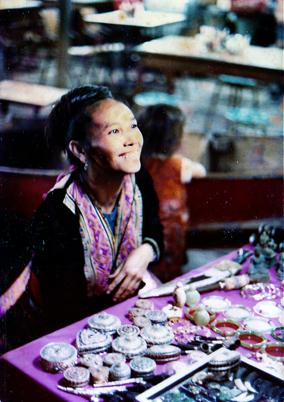 Outdoor market around an old tree in Pasang, near Chiang Mai, Thailand. (1979 photo)
