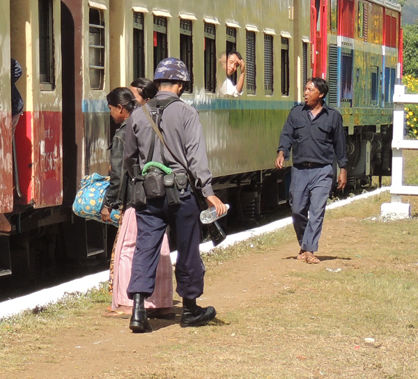 At Pyin Oo Lwin station it was a trifle alarming watching railway workers levelling the tracks just before the train was due to arrive.